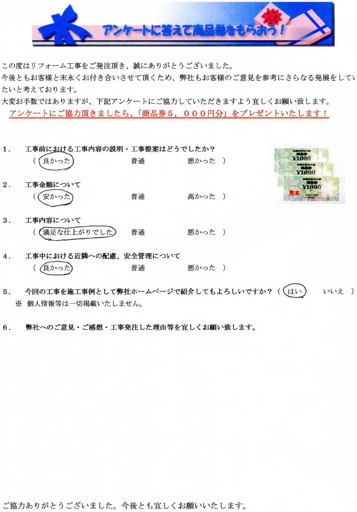 春日井市で外壁塗装リフォームをされたお客様の声 1.工事前における工事内容の説明・工事提案はどうでしたか? 良かった 2.工事金額について 安かった 3.工事内容について 満足な仕上がりでした 4.工事中にあける近隣への配慮、安全管理について 良かった 三井ホームの外壁塗装、軒天塗装、樋塗装、付帯部塗装、鉄部塗装を実施いたしました。 前の記事 次の記事 一覧へ戻る