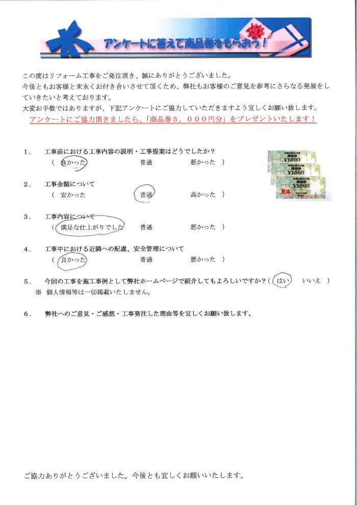 春日井市で外壁塗装リフォームをされたお客様の声 1.工事前における工事内容の説明・工事提案はどうでしたか? 良かった 2.工事金額について 普通 3.工事内容について 満足な仕上がりでした 4.工事中にあける近隣への配慮、安全管理について 良かった 春日井市で外壁塗装リフォームをされたお客様です。 前の記事 次の記事 一覧へ戻る