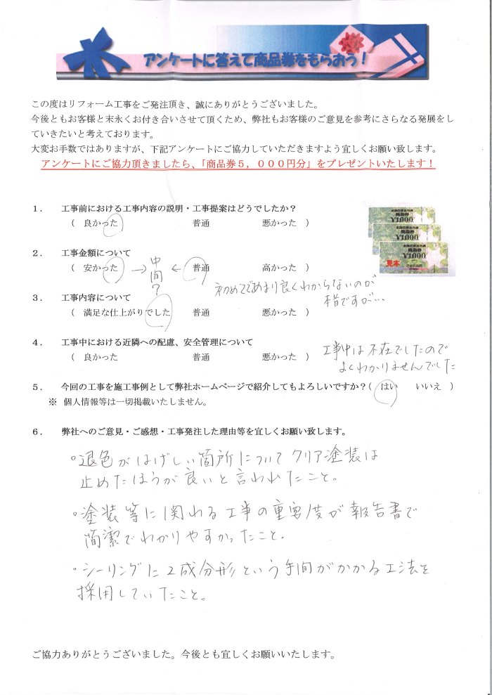 瀬戸市で外壁塗装リフォームをされたお客様の声