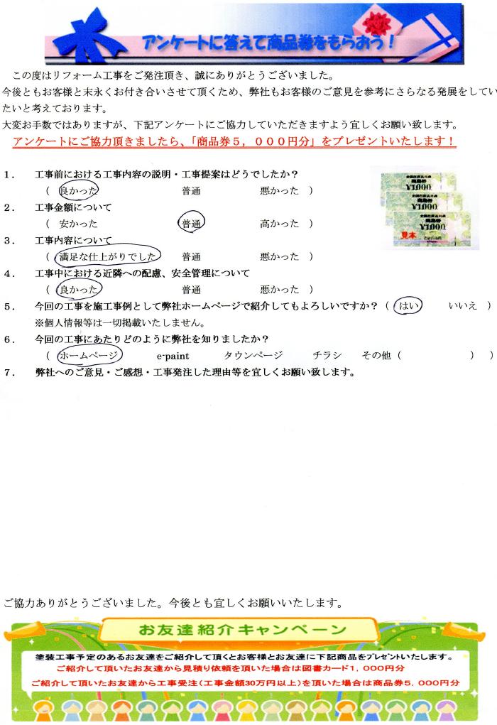 岡崎市で外壁塗装リフォームをされたお客様の声 1.工事前における工事内容の説明・工事提案はどうでしたか? 良かった 2.工事金額について 普通 3.工事内容について 満足な仕上がりでした 4.工事中にあける近隣への配慮、安全管理について 普通 遮熱塗装にて屋根を仕上げました。 前の記事 次の記事 一覧へ戻る